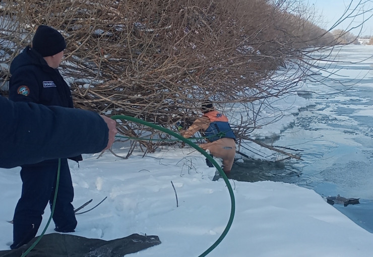 Мужчина вызвал спасателей по телефону 112, объяснив, что сидит на льду ниже плотины Петропавловского гидроузла, где открытые участки воды граничат со льдом. Собака попала в беду вблизи заросшего густым ивняком и кленами берега.