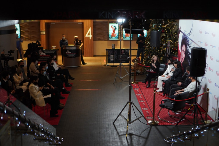 Перед началом спецпоказа фильма прошла пресс-конференция с участием каскадеров из Nomad Stunts, актрис Айгуль Иманбаевой и Жанель Макажан, а также председателя попечительского совета фонда "Болашақ" Динары Чайжунусовой. Актер и каскадер Жандос Айбасов, актеры дубляжа рассказали об особенностях работы над фильмом и ответили на вопросы журналистов.