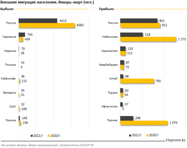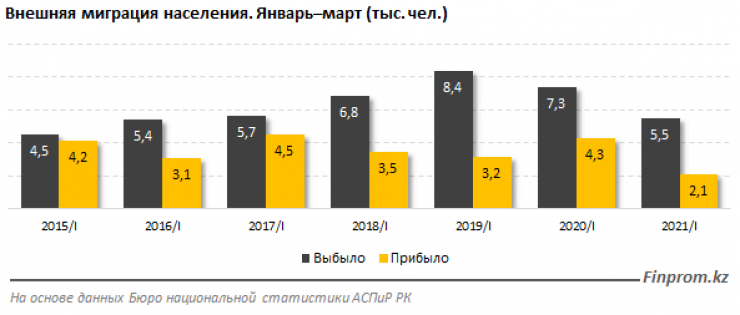 Из-за пандемии коронавируса в первом квартале 2021 года из Казахстана уехало на четверть меньше людей, чем годом ранее, прибыло - сразу вдвое меньше. Об этом говорится в материале портала finprom.kz, передает Tengrinews.kz.