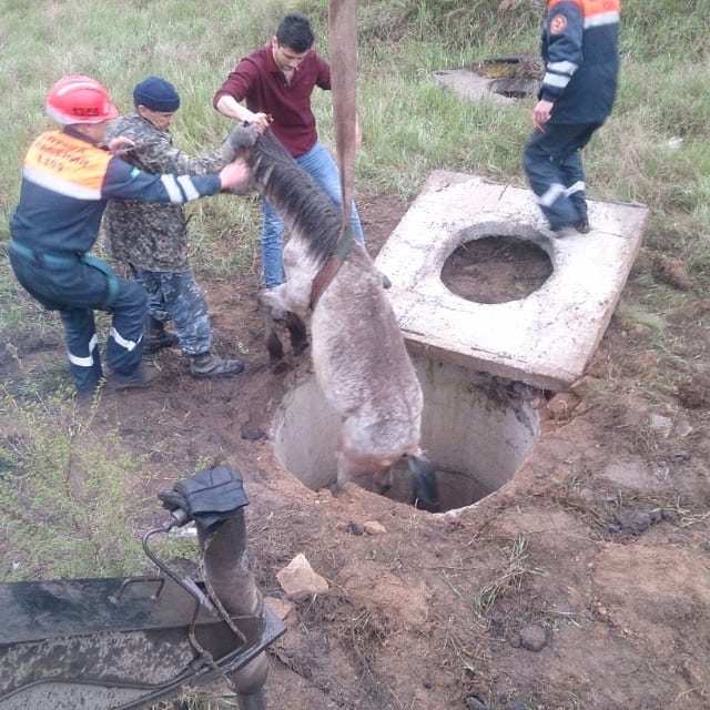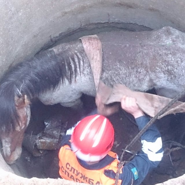 "Поступил вызов примерно в 17.00 в район Голубых прудов в Майкудуке. Звонившие сообщили, что прямо недалеко от остановки в колодец провалилась лошадь. Там, кстати, есть такая площадка между двумя массивами, где открытые два колодца. Туда может не только лошадь, но и любой ребенок упасть. Прохожие услышали странный звук, похожий на храп, подошли к колодцу и увидели лошадь. Как она туда попала, никто не понял. Люди вызвали нас, так как мы сейчас обслуживаем все экстренные вызовы, где речь идет об угрозе жизни людей, животных. Приехали туда и выяснили, что хозяина никто не знает. Нам подсказали, что на ближайших пастбищах может быть владелец животного. Мы поехали туда, нашли хозяина, хозяин пришел сразу и признал свое животное. Ну и потом стали вытаскивать", - рассказал начальник подразделения безопасности службы спасения 1355 Андрей Фридовский.