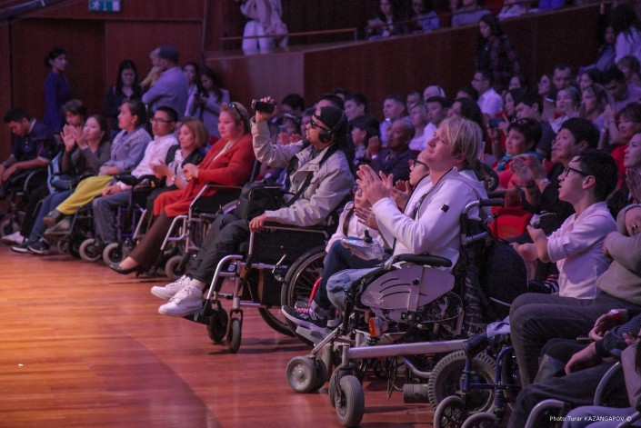 Первый ряд центрального концертного зала "Казахстан" заполнили дети и взрослые с ограниченными возможностями.