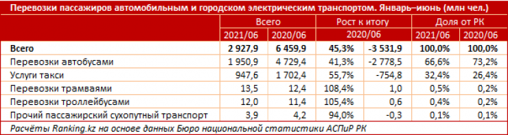 Еще 28 процентов составили доходы от автобусных перевозок: 38,3 миллиарда тенге, плюс 25,1 процента за год. Услуги такси принесли компаниям всего 2,1 миллиарда тенге, трамвайные перевозки — 841,7 миллиона тенге, троллейбусные — 746,4 миллиона тенге.