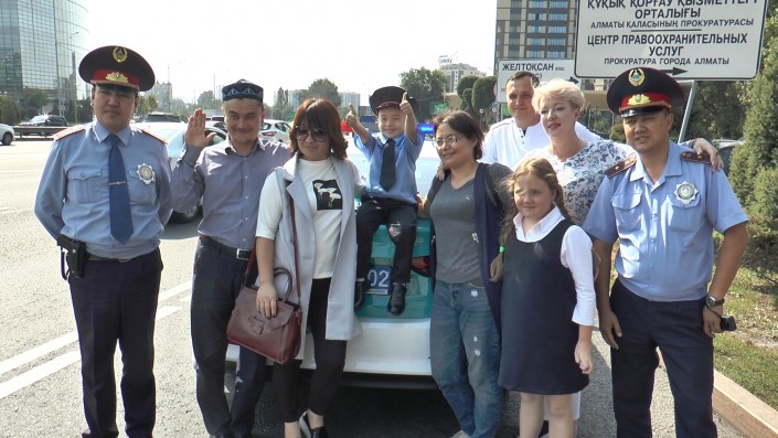 "Ребенок тщательно подготовился к встрече: он был одет в полицейскую амуницию и был в отличном настроении. Адилету было интересно и весело принимать участие в патрулировании, сидя рядом с сотрудниками полиции. Малыш почувствовал себя настоящим полисменом. Отчасти так оно и есть, ведь каждый прожитый день для него проходит в борьбе и считается уже победным.
