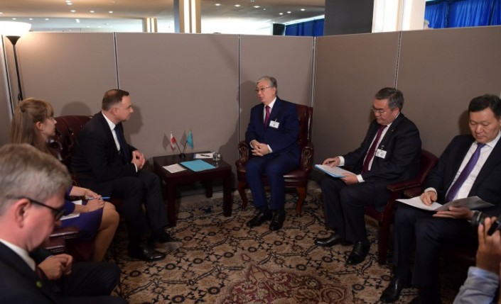 Токаев отметил, что в рамках сессий ГА ООН в Нью-Йорке казахстанско-польские встречи на высшем уровне стали доброй традицией. В качестве примера он привел знакомство Анджея Дуды с Первым Президентом Казахстана Нурсултаном Назарбаевым в сентябре 2015 года, а также личное участие польского лидера в тематическом брифинге Совета Безопасности ООН с участием Елбасы в январе 2018 года.