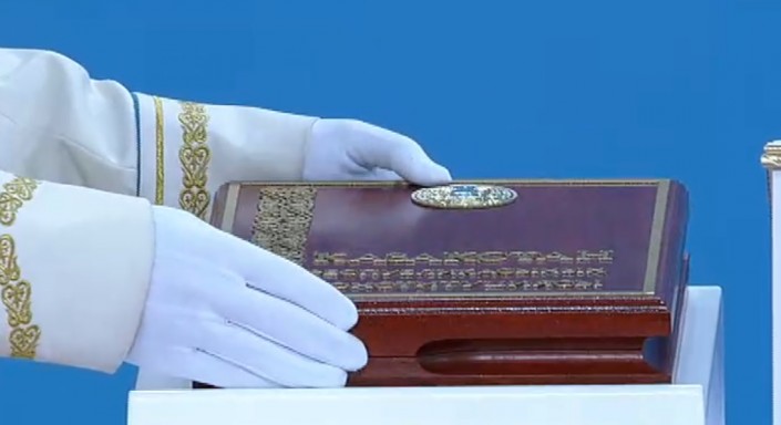 11.07 Токаев, положив правую руку на Конституцию, произнес слова присяги: