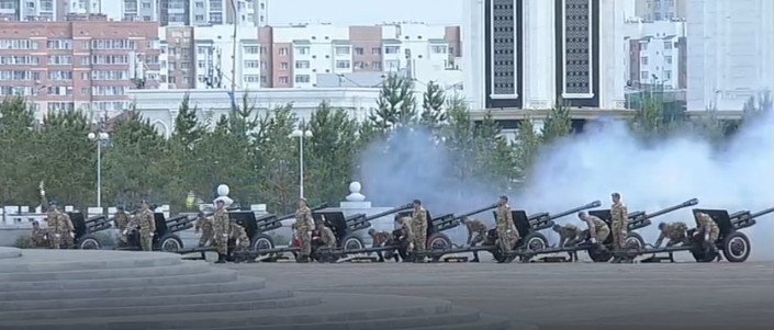 11.09 На площади Қазақ Елі прогремели залпы из пушек.
