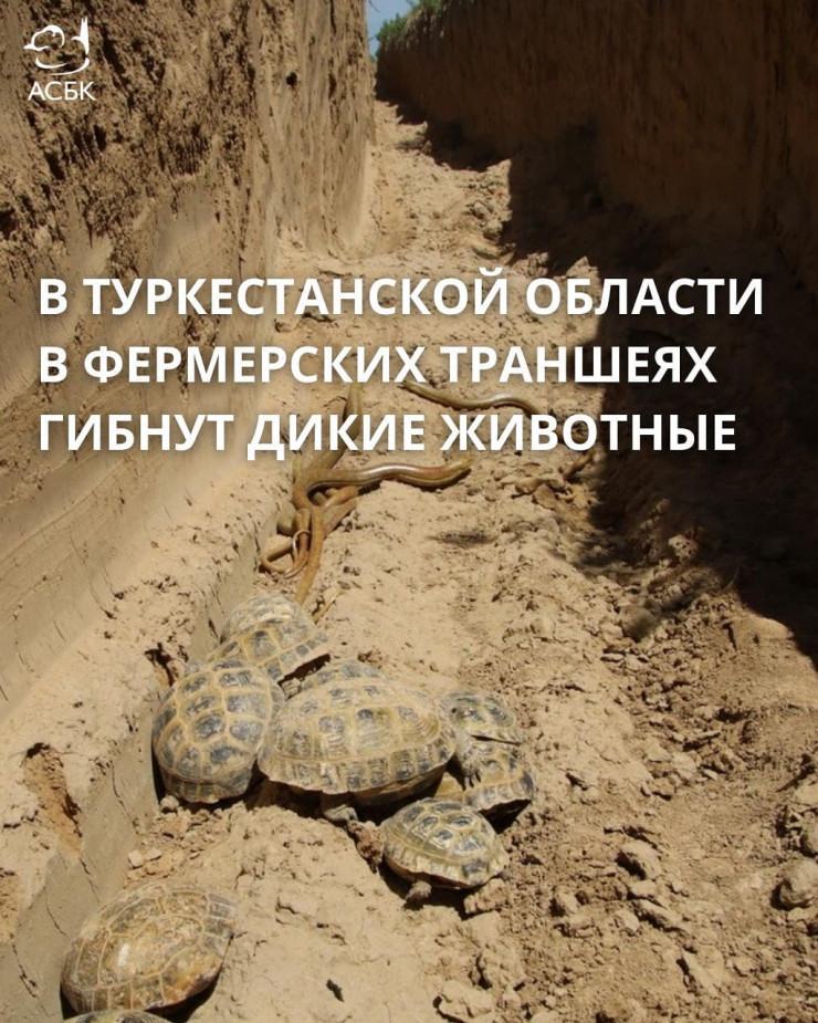 В Туркестанской области вновь зафиксированы факты гибели рептилий и амфибий в глубоких искусственных траншеях на территории фермерских хозяйств, сообщает Tengrinews.kz со ссылкой на сайт Казахстанской ассоциации сохранения биоразнообразия (АСБК).