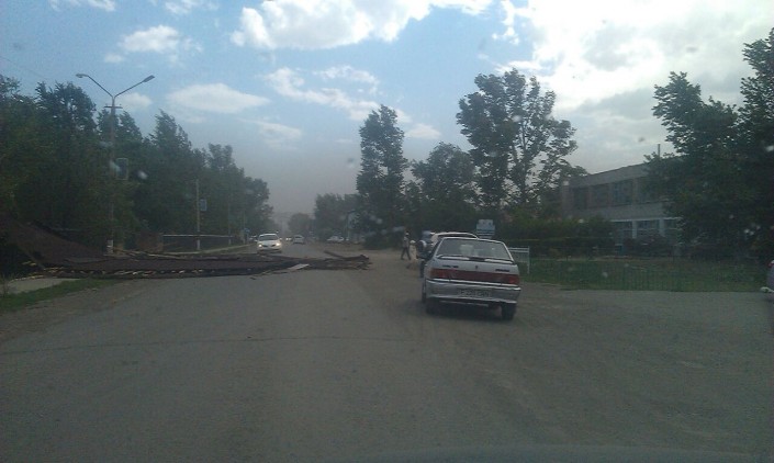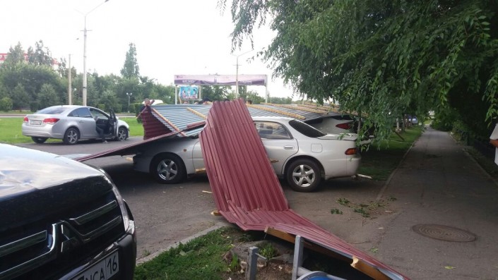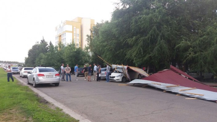 В Восточном Казахстане ураган с порывами ветра до 30 метров в секунду стал причиной многочисленных повреждений зданий и автомобилей. В Усть-Каменогорске сорванная кровля повредила автомобили, также ветер срывал рекламные конструкции, рушил остановки и даже валил деревья, передает корреспондент Tengrinews.kz.