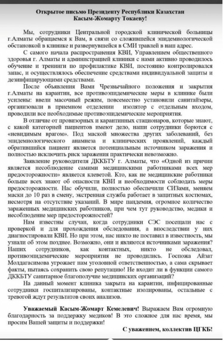 Нәтижесінде вирус жұқтырған қызметкерлер Мемлекет басшысына хат жолдаған.