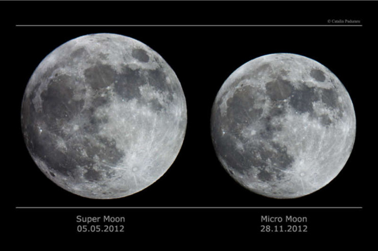 Сравнение размеров видимости суперлуны и луны в 2012 году