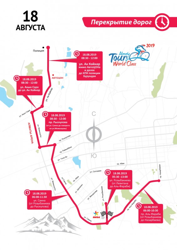 Участки семи улиц перекроют с 5.30 до 13.00 часов в связи с проведением велогонки Tour of World Class Almaty 2019.