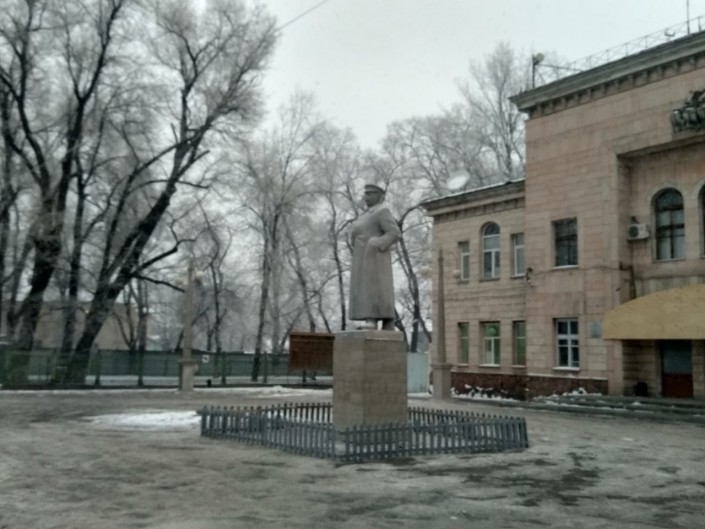Как сообщили в акимате Турксибского района Алматы, памятник установлен временно, и это просто декорация для фильма.