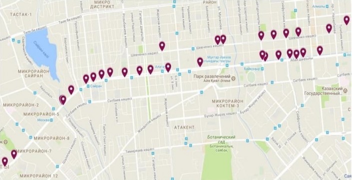 Общее расположение камер "Сергек" на карте Алматы. © instagram/almaty_dtp