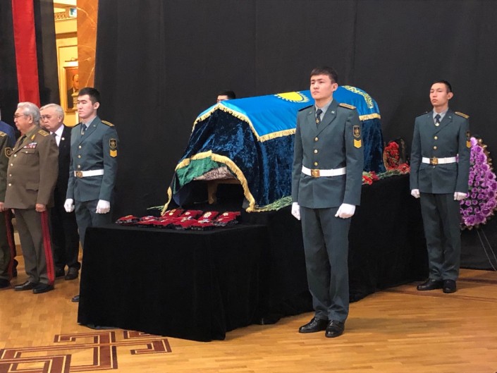 На церемонии присутствовали родные и друзья Султана Джиенбаева, а также государственные деятели.