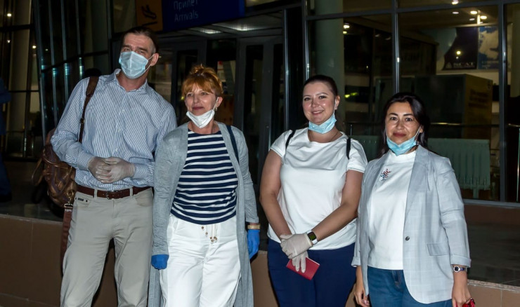 Самолет с медиками приземлился поздним вечером в международном аэропорту Тараза "Аулие-Ата". В составе прибывшей группы - врач-инфекционист, анестезиолог-реаниматолог, эпидемиолог и специалист амбулаторно-поликлинической службы.