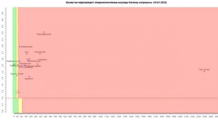 Согласно данным матрицы оценки эпидемиологический ситуации, в Казахстане на 16 января не осталось ни одного региона в "зеленой" зоне, передает корреспондент Tengrinews.kz.