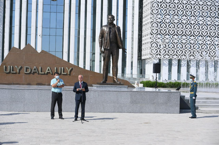 "Памятник сделан по фотографии Нурсултана Назарбаева. В композиции скульптуры, установленной в новом административно-деловом центре Туркестана, на памятнике Елбасы "Ұлы Даланың Ұлы" изображена схема старого Каратау.