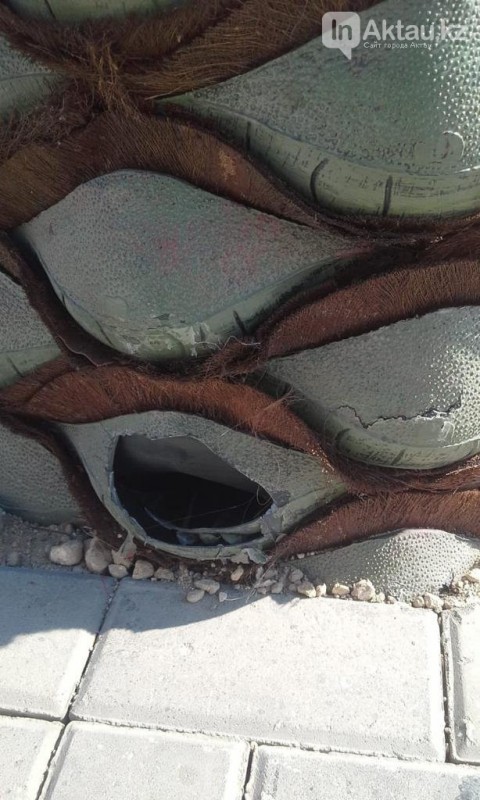 В Актау строительная организация, занимающаяся благоустройством набережной, пожаловалась на вандалов, которые успели испортить несколько недавно установленных искусственных пальм, сообщает ИнАктау.