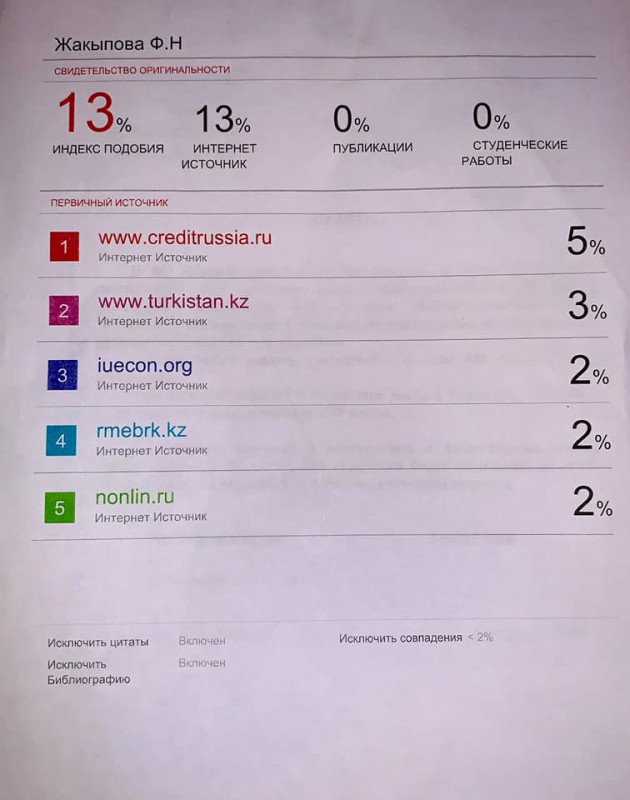 Ранее экс-директор Департамента административной работы и государственных закупок МОН Анар Каирбекова заявила, что по результатам проверки на плагиат в работе вице-министра образования и науки Фатимы Жакыповой оригинальными являются только 40 процентов диссертации.