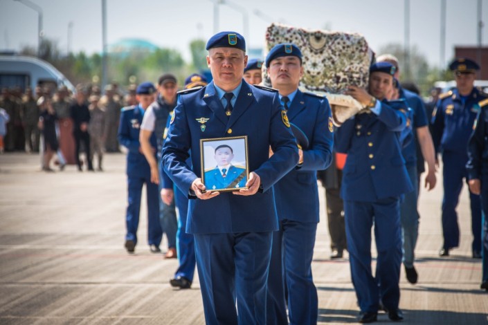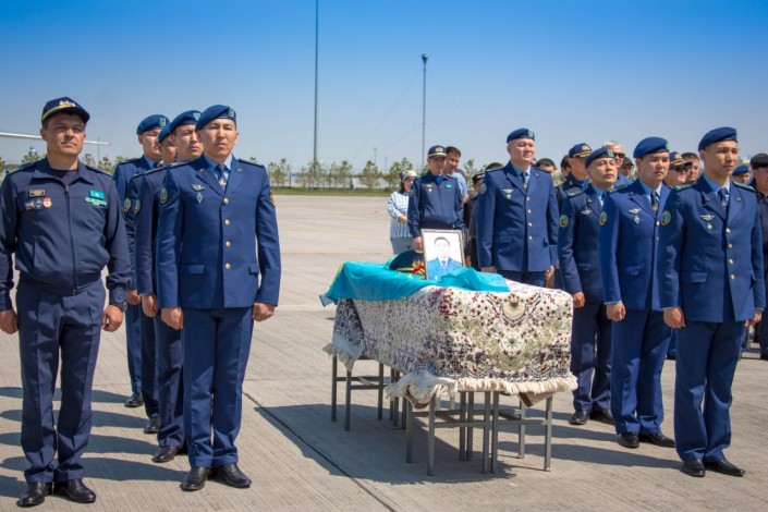 "Сегодня военнослужащие воинских частей Сил воздушной обороны Вооруженных Сил Республики Казахстан Акмолинского гарнизона с соблюдением воинского ритуала проводили своего сослуживца – Раимкулова Ерлана в последний путь. Военно-транспортный самолет ВВС Казахстана доставит сегодня тело погибшего военнослужащего на его малую родину - в Жамбылскую область", - говорится в сообщении.