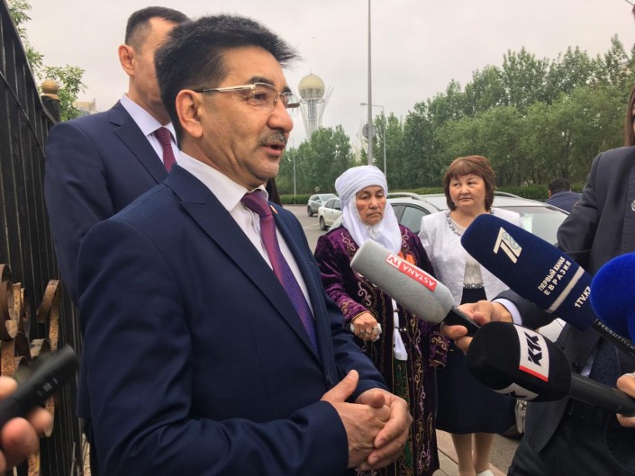 Примерно в полдень на избирательный участок прибыл Амиржан Косанов, представляющий движение "Ұлт тағдыры" ("Судьба нации"). Голосовать кандидат пришел вместе с супругой.