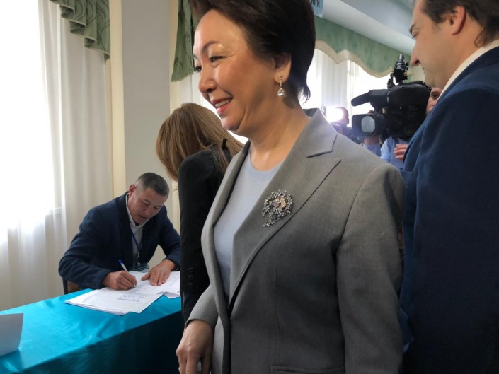 Единственная женщина - кандидат в президенты Дания Еспаева вместе с матерью своей коллеги проголосовала на 113-м участке.