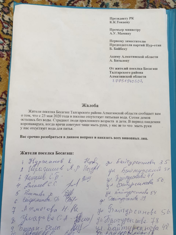 Бахыт Карашев сообщил, что вместе с односельчанами подготовил петицию и собрал подписи. Документ будет направлен Президенту Казахстана, премьер-министру и другим высокопоставленным чиновникам.