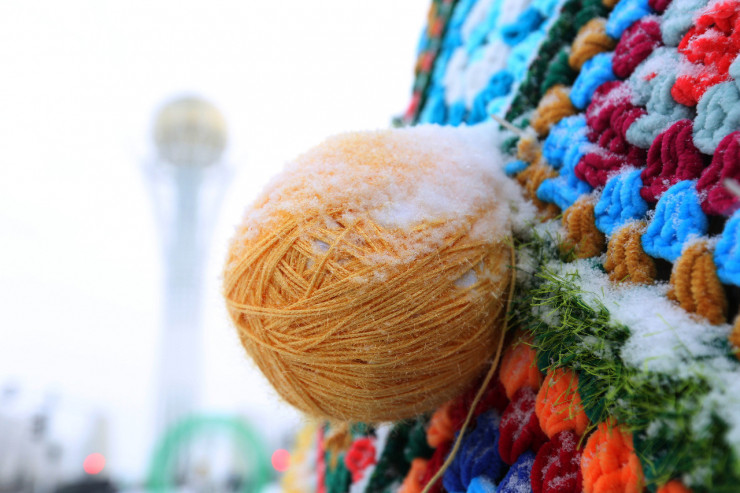 Вязаную елку высотой шесть метров установили в Нур-Султане 29 декабря. Народный флешмоб "Экоелка в стиле құрақ көрпе" был запущен в Нур-Султане две недели назад. За это время связано свыше 2 000 квадратиков размером 20 на 20 сантиметров. Народный проект объединил города Казахстана и жителей столицы. Также вязали мастерицы из России и Узбекистана.