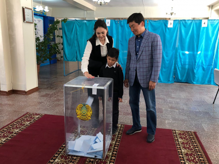 Аким Карагандинской области пришел на избирательный участок вместе с женой и дочерью. Они голосовали в 83-й школе в Караганде. По словам Ерлана Кошанова, дочь проживает в Нур-Султане, но взяла открепительный талон, чтобы отдать свой голос за нового президента с семьей. "Для нас это семейный праздник", - заявил аким.