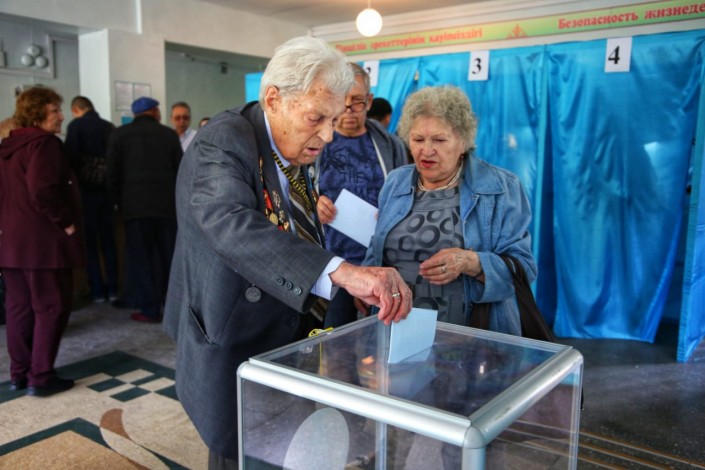 В Усть-Каменогорске на избирательный участок пришел ветеран ВОВ Павел Ященко. По его словам, он не пропускает ни одни выборы. Павла Александровича сопровождала супруга.
