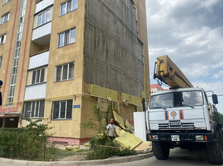 Инцидент произошел утром 9 июля в Турксибском районе. Здесь в микрорайоне Жас Канат начала вздуваться облицовочная часть многоэтажного дома. Взволнованные местные жители распространили в соцсетях и мессенджерах кадры с места происшествия. На многочисленных фотографиях и видео можно увидеть, как наружное покрытие отделилось от девятиэтажного дома.