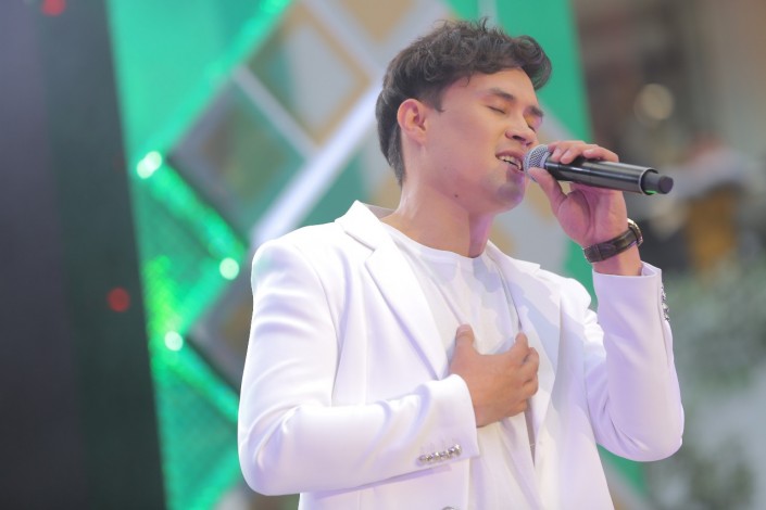 Финальный концерт телешоу открыл Ернар Айдар. Женская половина встретила его громкими овациями. Артист исполнил несколько песен, зал громко ему подпевал.
