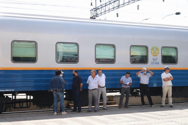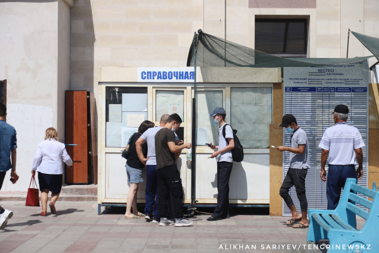 Ограничения распространились и на следующий день, поэтому на железнодорожном вокзале Тараза можно было наблюдать большое скопление пассажиров.