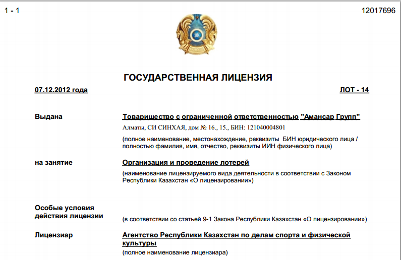 Примечательно, что название организации - ТОО "Амансар групп" - совпадает с тем, что, по информации ДВД Астаны, получило государственную лицензию на автоматы, размещенные по адресу первого обращения.