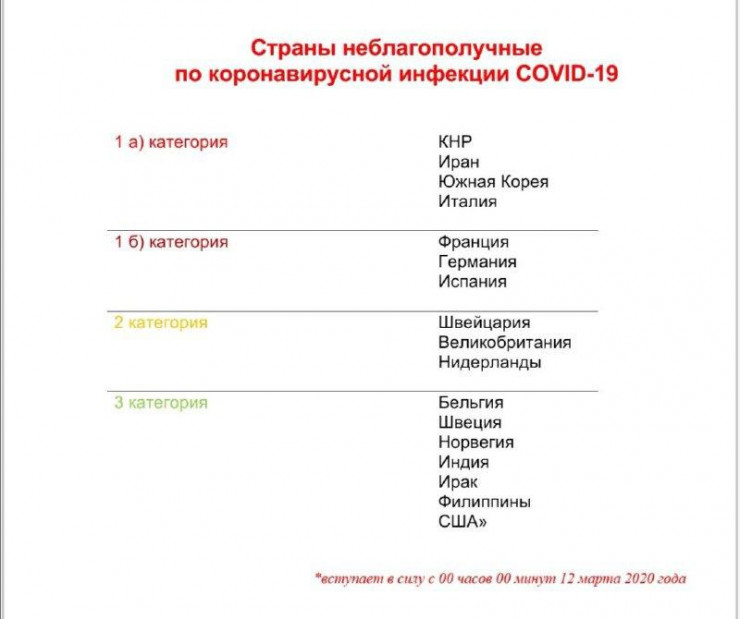- запрет на выезд в страны категорий 1А, 1Б, 2 и 3;