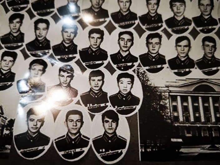 Аскар Жумагалиев родился в Оренбургской области в 1972 году. Он окончил Свердловское суворовское военное училище. И, судя по фото, учился он там с 1987 по 1989 годы. То есть, получается, выпустился он, когда ему было уже 17 лет. На верхнем фото он, по всей видимости, во втором ряду снизу, крайний к центру.