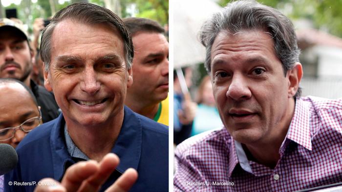 Кандидаты Жаир Болсонару (слева) и Фернанду Аддад (справа)