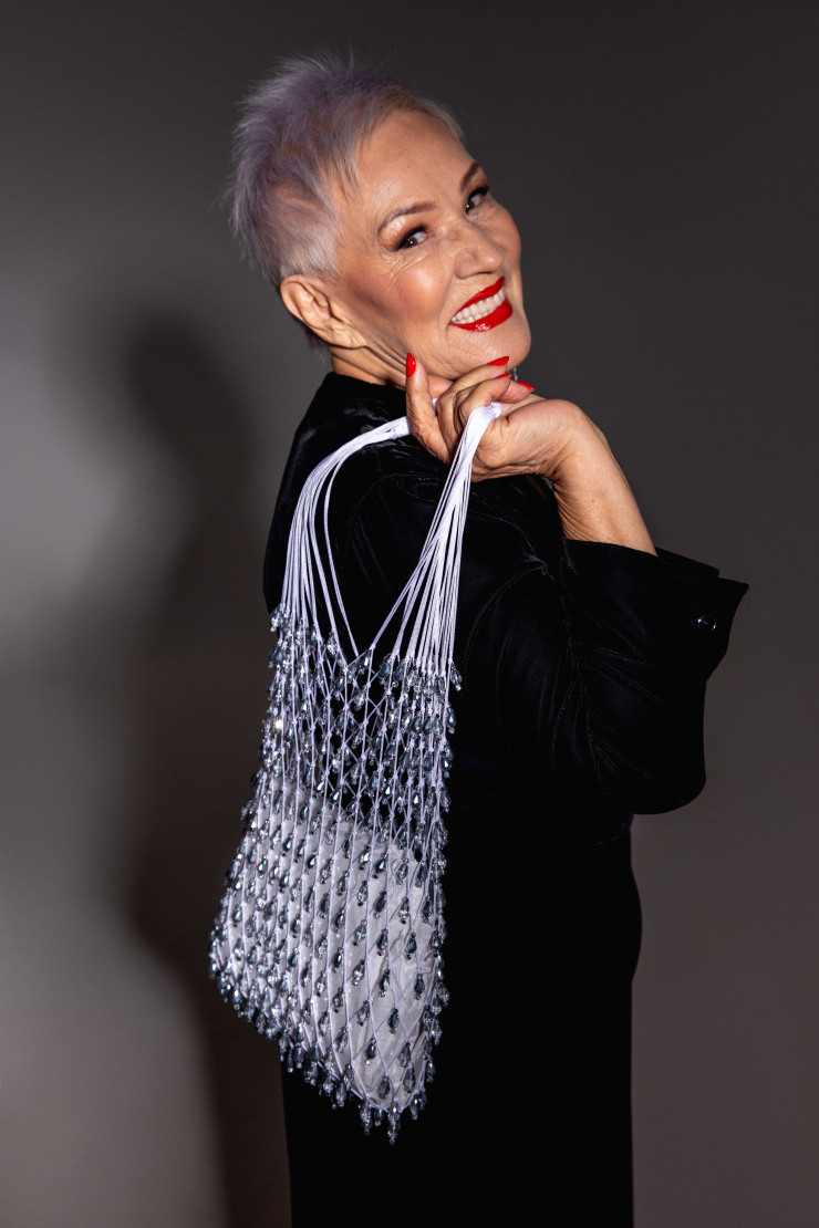 Девушка решила украсить авоськи, добавив кристаллы, хрустальные бусины и перья. В рекламной съемке приняли участие модели 60+.