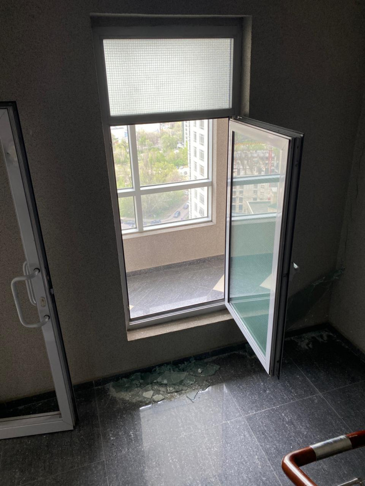 Разбиты окна, повсюду осколки.