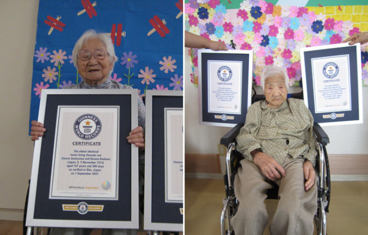 Жительницы Японии Умено Сумияма и Коуме Кодама были признаны самыми старыми однояйцевыми близнецами из ныне живущих в возрасте 107 лет и 300 дней по состоянию на 1 сентября 2021 года, на момент фиксации рекорда.