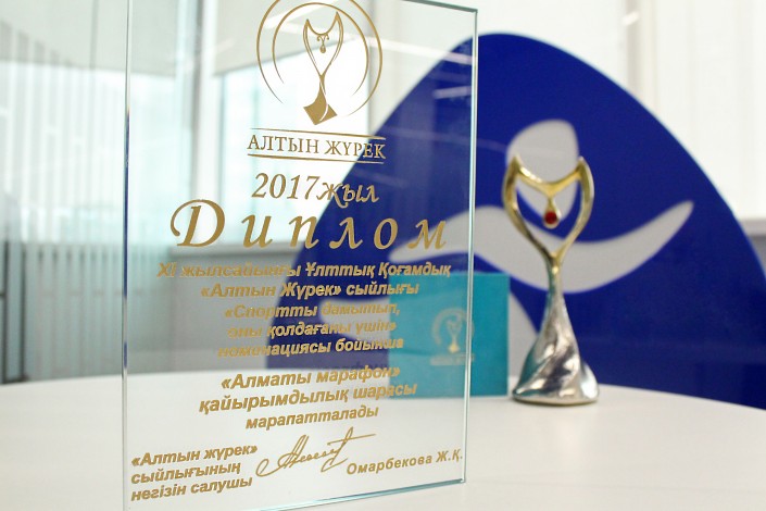 За шесть лет проведения "Алматы марафона" было реализовано 11 крупных благотворительных проектов, связанных с реабилитацией и поддержкой детей с особыми потребностями. На реализацию проектов было затрачено более 46 миллионов тенге. Только в этом году 1 500 детей из пяти школ-интернатов и ясли-сада получили помощь от "Алматы марафона": построены футбольное поле, скалодром, открыты балетный класс и сенсорная комната, специальными тренажерами и реабилитационным оборудованием укомплектованы классы для лечебной физкультуры, закуплен самый разнообразный спортивный инвентарь. За свою благотворительную деятельность команда "Алматы марафона" удостоилась в этом году национальной премии в области благотворительности "Алтын журек".