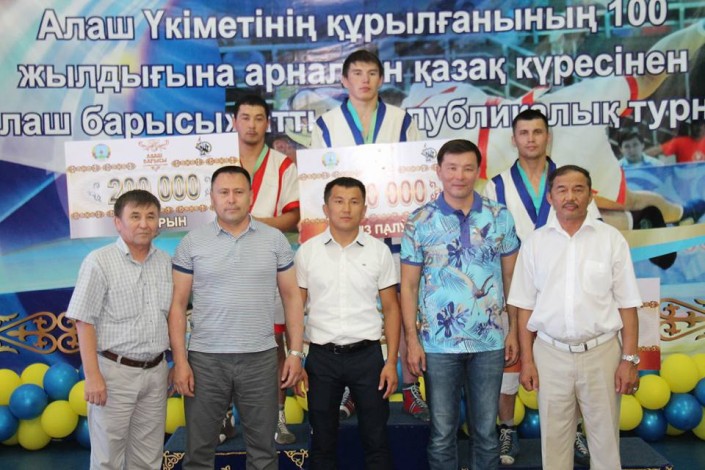В Сырымском районе Западно-Казахстанской области в рамках программы Модернизации общественного сознания прошел республиканский турнир по қазақша курес "Алаш барысы" в честь 100-летия со дня образования правительства Алаш. На торжественной церемонии открытия соревнования, организованного первый раз в Сырымском районе, победитель республиканского турнира "Қазақстан барысы-2017" Еламан Ергалиев поздравил собравшихся и пожелал удачи участникам.