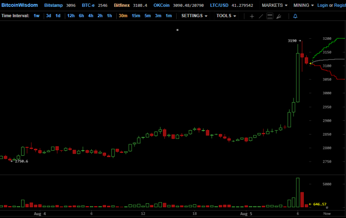 Утром 5 августа цена первой цифровой валюты на ряде бирж уверенно преодолела отметку в 3100 долларов, пишет ForkLog.