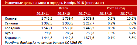 Потребление любимой казахстанцами баранины выросло в целом по РК сразу на 22 процента по сравнению с прошлым кварталом и составило 1,9 килограмма в среднем на человека в квартал, при этом в городской местности отмечен рост на 45 процентов, до 0,9 килограмма.