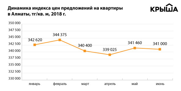 В рейтинге казахстанских городов с дорогой недвижимостью традиционно лидирует Алматы. В июне один квадратный метр здесь стоил около 341 тысячи тенге. На втором месте Астана (325,8 тысячи), на третьем - Актау (213,6 тысячи).