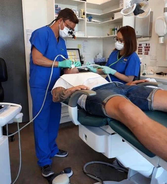 Сам дантист - обладатель ослепительной белозубой улыбки и хорошей физической формы. По его словам, ежедневно он встает в шесть часов утра и выпивает немного яблочного уксуса. На завтрак готовит омлет с большим количеством овощей.