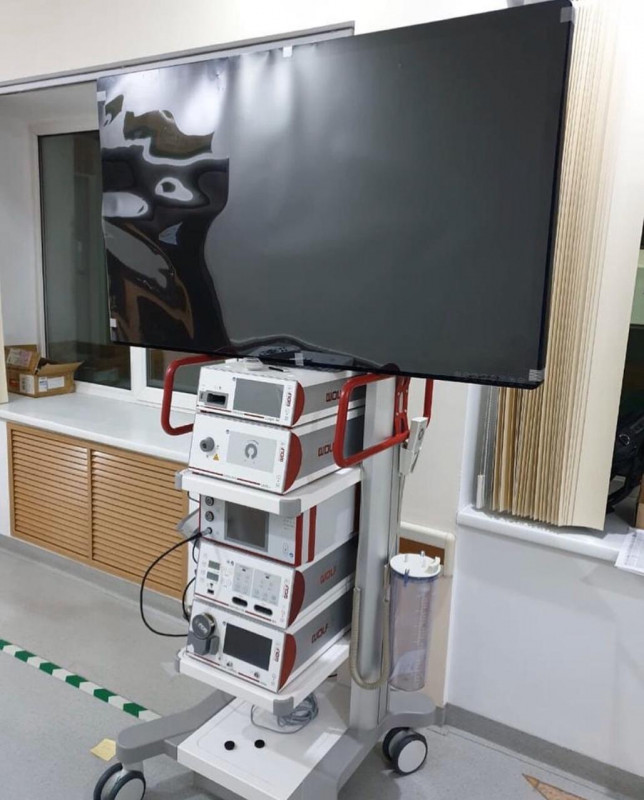 Кроме того, в конце 2019 года была закуплена эндоскопическая стойка последнего поколения для операций на позвоночнике в полной комплектации от компании Richard Wolf.