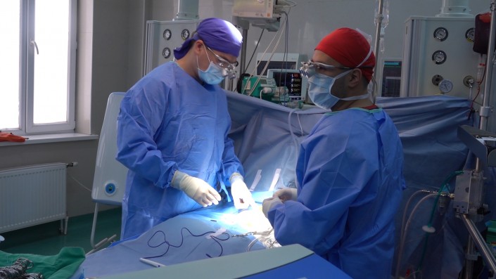 "Сейчас есть возможности, специалисты, все необходимое. Операция еще осложняется тем, что организм пациентов хрупкий. Сами понимаете: маленький ребенок, сантиметров 45 ростом. Соответственно, и сосуды тонкие, само сердце маленькое. Операция проводится под особым увеличением, особым инструментарием. Нитками, которых почти не видно, их нужно чувствовать. И настолько эти нити тонкие и хрупкие, что их нельзя тянуть. Надо чувствовать их, делать все осторожно и аккуратно, в один разрез, в один стежок. Здесь на один-два миллиметра сместился, чуть направление иглы поменял в другую сторону - все, это уже решает", - рассказывает Кайрат Куатбеков.