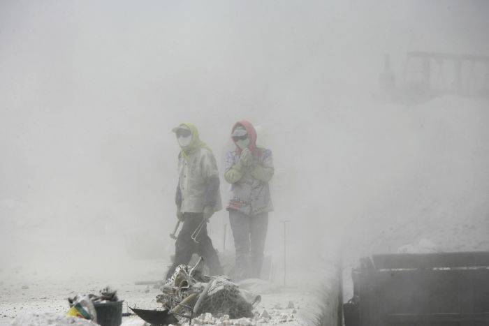 Многие компании перенесли свои заводы с востока страны в западные и центральные регионы. Рабочие трудятся в пыли.