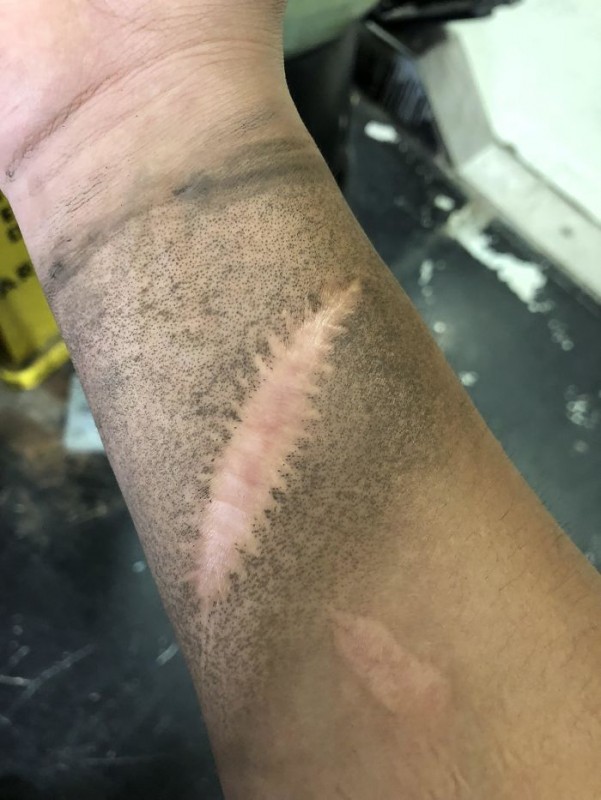 Шрам не загрязняется, поскольку потовые железы не образуются в рубцовой ткани, а они-то и помогают "захватывать" пыль.